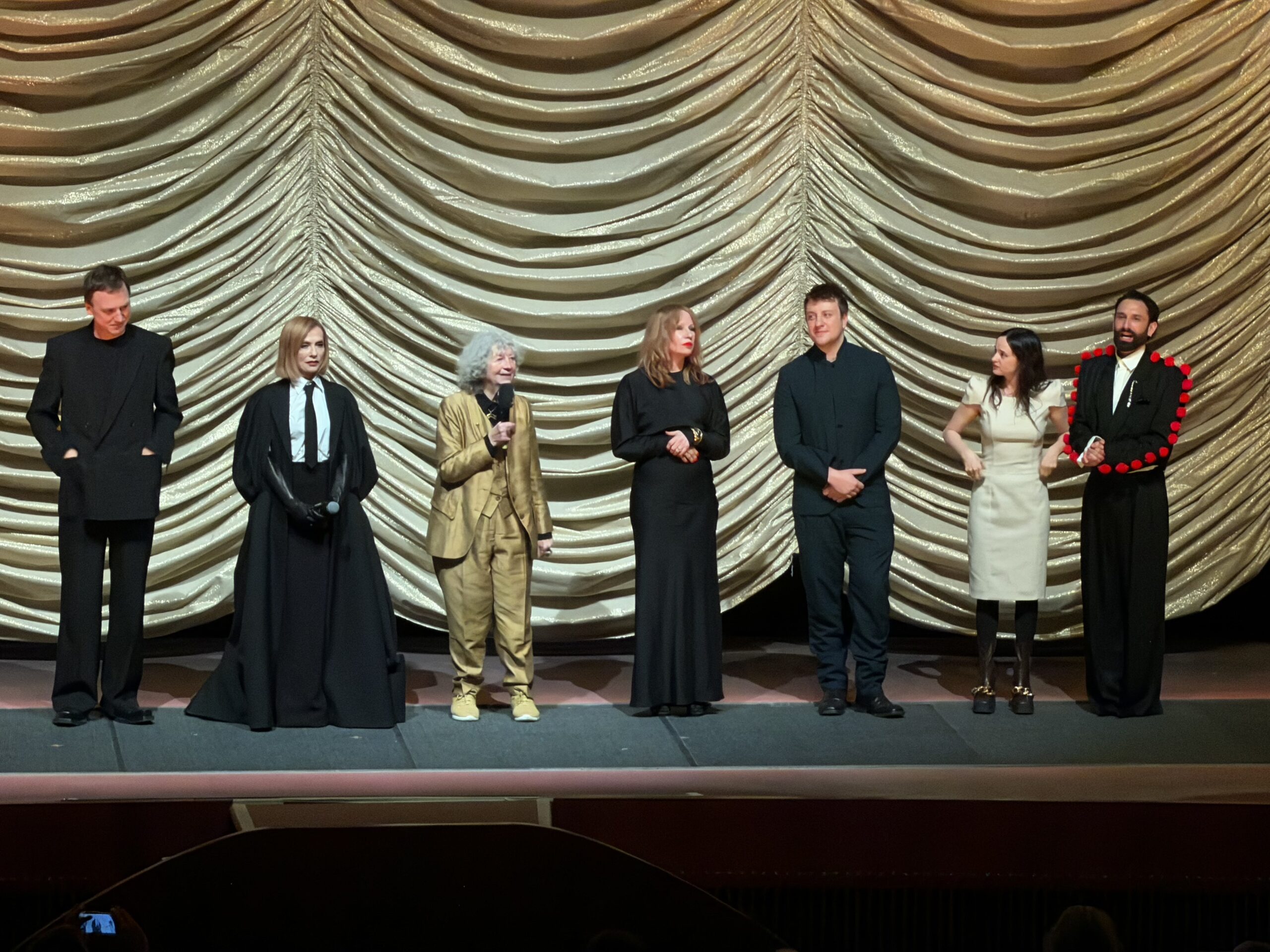 Hier ein Foto von Ulrike Ottinger und ihren Hauptdarsteller:innen, das ich bei der Premiere des Films im Zoo Palast aufgenommen habe: